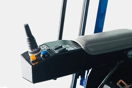 Der Bedienhebel der Standard-Hydraulik ist gut zugänglich. Die optionale elektrische Hydraulik wird über den in der Armlehne integrierten Joystick gesteuert – für einen besonders hohen Bedienkomfort.