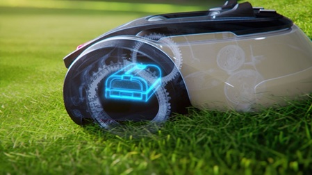 Die bürstenlose Messer- sowie Radantriebe agieren flüsterleise und dennoch extrem kraftvoll. Der langlebige Premium-Akku garantiert durch seine tiefe Positionierung direkt an der Hinterachse eine absolut souveräne Geländegängigkeit.